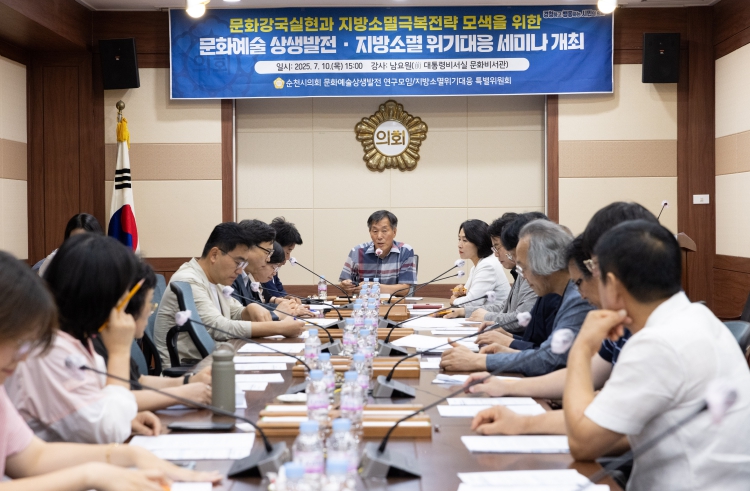 지방소멸 특위 위원장 이복남 의원 또한 “지방소멸 위기는 먼 미래의 이야기가 아닌, 순천을 포함한 중소도시가 직면한 절박한 현실”이라며, “문화예술을 비롯해 농업 활성화, 청년 유입, 도시공간 재편 등 순천시의 여건에 맞는 해법을 적극 발굴해 순천형 지방소멸 극복모델을 만들어가겠다”고 강조했다.