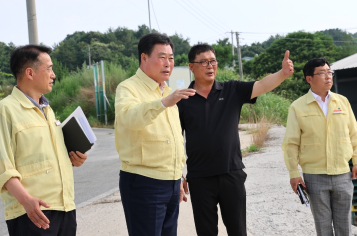 이날 김산 군수는 한우 및 육계 사육 농가를 방문해 환풍기와 냉방시설 설치 현황을 점검하고, 폭염 피해를 최소화하기 위한 사양관리 방법과 농가의 건의사항을 직접 살폈다.