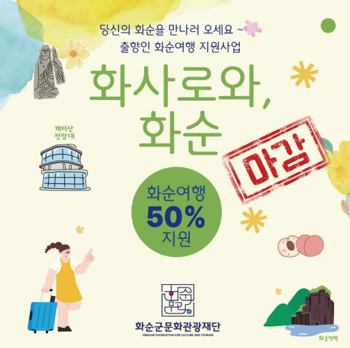 3월 24일(월)부터 시작된 ‘화사로와, 화순’은 화순을 찾은 출향인을 대상으로 화순 여행비용의 50%를 화순사랑상품권 또는 화순팜 쿠폰으로 지원해 큰 호응을 얻었다.