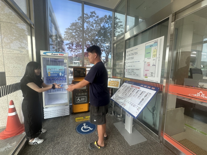 민원실을 방문하는 군민 누구나 자유롭게 생수를 이용할 수 있으며, 대기 시간이 길거나 거동이 불편한 어르신에게는 직원이 직접 생수를 건네며 세심한 배려를 더하고 있다.