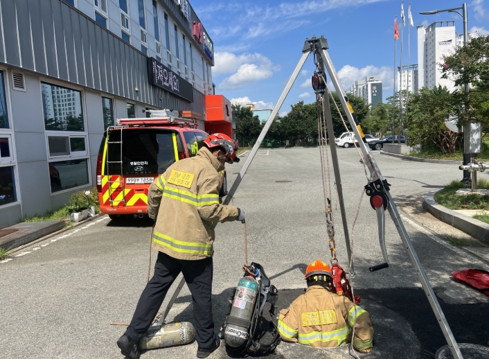 이번 훈련은 맨홀, 저수조 등 밀폐공간 사고 발생 시 필요한 대처능력 향상과 효율적인 대응체계 구축을 위해 마련됐다.