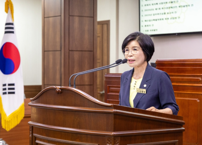 이에 오행숙 의원은“금당공원의 명칭을 백강공원으로 바꾸고, 추모공원으로써 역할을 다 할 수 있도록 새롭게 정비할 것”을 건의하며 자유발언을 마쳤다.