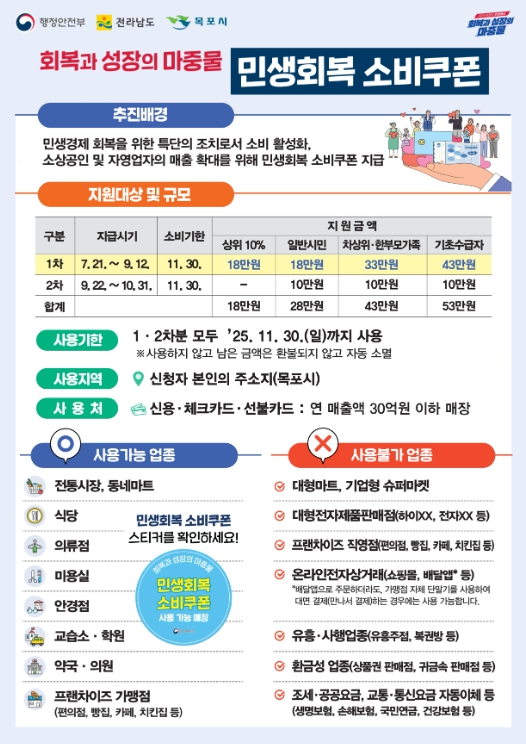 민생회복 소비쿠폰은 경기침체로 어려움을 겪는 시민들의 소비를 촉진하고 지역경제를 활성화하기 위한 정부 지원 정책으로 1차 지급은 오는 21일부터 9월 12일까지 진행된다.
