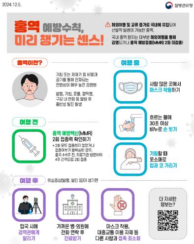 홍역은 백신 접종으로 충분히 예방이 가능하므로 베트남 등 홍역 유행 국가 방문 전 엠엠알(MMR) 예방접종력을 확인해야 한다.