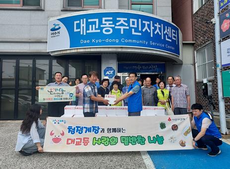 오영석 대교동장은 “지속적인 나눔을 실천해 주시는 청정게장에 깊이 감사드린다”며 “이번 나눔이 여름철 폭염에 지친 주민들에게 큰 위로가 됐고, 예방수칙도 안내할 수 있어 뜻깊었다”고 말했다.