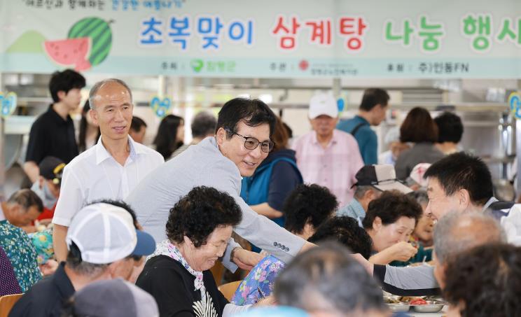 특히, 이상익 함평군수도 이날 삼계탕 배식에 참여해 어르신의 안부를 여쭈며 정성을 담아 삼계탕을 대접했다.