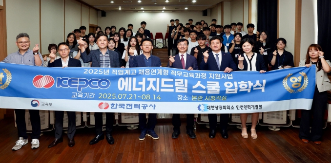 한전은 교육부와 함께 7월 21일 대한상공회의소 인천인력개발원에서 ‘KEPCO 에너지드림스쿨’ 입교식을 개최했다. 이번 입교식에는 한전, 교육부, 대한상공회의소 관계자 및 교육생 50명이 참석했다.