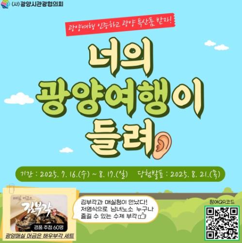 당첨자는 8월 21일 (사)광양시관광협의회 홈페이지와 공식 인스타그램을 통해 발표되며, 경품은 발표일로부터 7일 이내에 개별 발송될 예정이다.