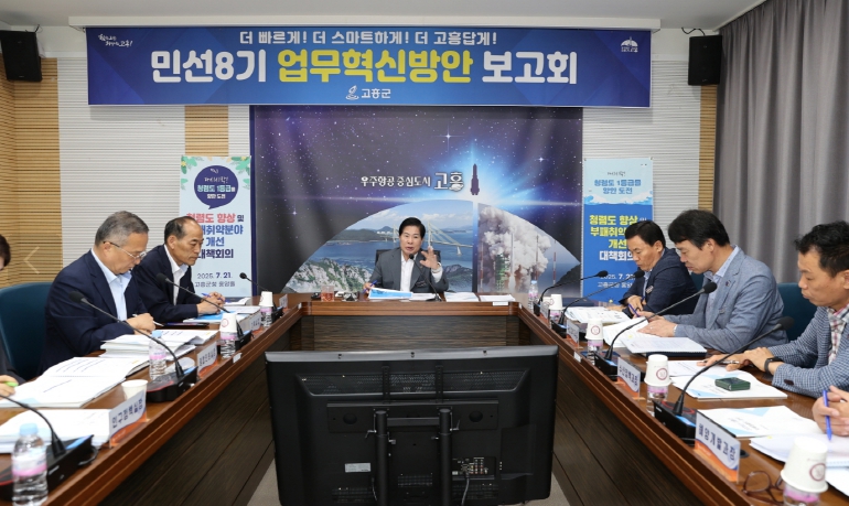 주요 혁신 방안으로는 ▲2025년 종합 청렴도 1등급 달성 방안 ▲친절한 고흥 브랜드 제고 ▲인구정책 스마트 시스템 구축 ▲관광정책 변화로 지속 가능한 경제 활성화 ▲민간 투자사업 안정 추진 방안 ▲군 관리계획을 수반한 각종 사업 행정절차 단축 방안 ▲군민 소통 창구 다양화 ▲보조사업 기본 및 실시설계 선행 추진으로 사업기간 단축 ▲합계출산율 2.1명 목표 달성 등 부서별 공유가 필요한 사항으로 집중적으로 논의됐다.