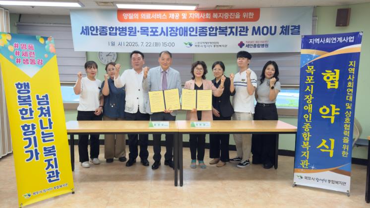 이날 협약식은 장은채 목포시장애인종합복지관장과 문명호 세안종합병원 행정원장을 포함한 양 기관 관계자 10여 명이 참석한 가운데 복지관 이용 고객과 그 가족의 건강관리 향상을 위한 의료서비스 연계와 실질적인 복지서비스 제공을 목표로 추진됐다.