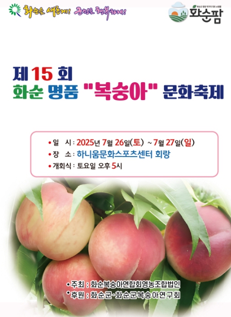 화순 명품 복숭아 축제는 화순군의 대표적인 여름 농산물인 복숭아의 우수한 맛과 품질을 널리 알리기 위해 매년 개최하는 행사이다.