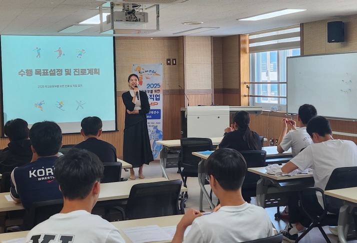 이어 학생선수반은 ▲ 체육 관련 자격 및 직업 이해 ▲ 진로 설계와 수행목표 작성 ▲ 진로준비 기초로 자기관리 ▲ 몸챙김·마음챙김 실습에 참여했다.