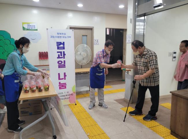 이번 행사는 무더위 속 건강 관리를 위해 마련됐으며 동구평생학습관 과일 카빙반과 학습 매니저들은 이른 아침부터 정성껏 과일을 손질하고 포장하며 나눔의 의미를 더했다.