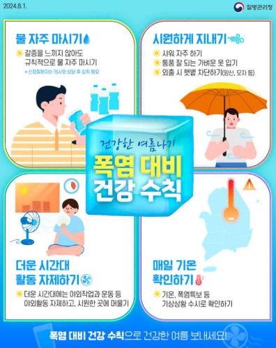 특히 노인, 어린이, 만성질환자 등 고위험군은 무더위 시간대 외출을 삼가고, 실내에서 충분한 수분을 섭취하며 상태를 수시로 확인하는 등 각별한 주의가 필요하다.