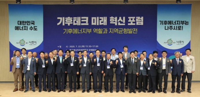나주시는 지난 22일 한국에너지공과대학교에서 ‘기후테크 미래 혁신 포럼 : 기후에너지부 역할과 지역균형발전’을 주제로 포럼을 개최했다고 23일 밝혔다.