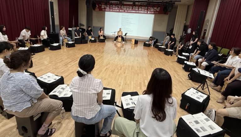 김 대표는 ▲카혼 음색 잡는법 ▲타법 교육 ▲수업에 적용할 수 있는 카혼 리듬 게임 ▲8비트 기본·심화주법 ▲16비트 기본·심화주법 등을 교육했다.