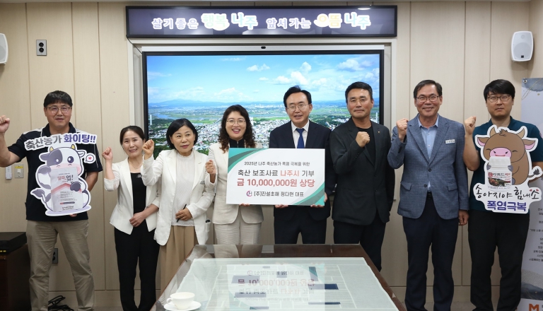 이날 전달식에는 윤병태 나주시장과 정다현 ㈜진설초해 대표, 낙농협회 나주시지부 관계자 등이 참석했으며, 최근 잇따른 폭우와 폭염으로 가축들의 스트레스가 심화된 축산농가의 조기 회복을 지원하기 위해 마련됐다. 기부 물품은 나주시 관내 80호 낙농가에 전달될 예정이다.