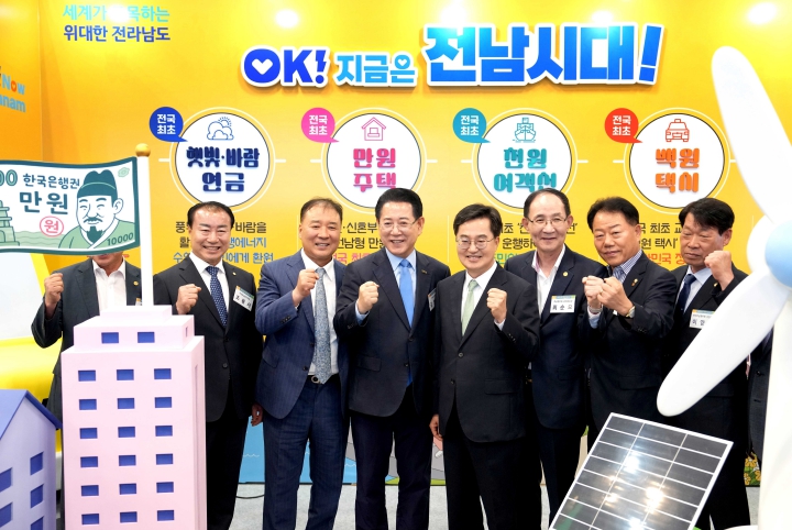 정책홍보관에선 올해 지방자치 30년을 기념해 민선 1~8기 대한민국을 선도한 전남의 우수 정책을 선보였다. 도민의 일상을 변화시킨 대표 정책인 햇빛바람 연금, 천원 여객선, 만원 주택, 백원택시를 캐릭터 모형으로 전시해 친근감 있게 소개했다. 전남형 으뜸정책 30선을 선정하고, 이를 체험형 게임과 접목해 정책 이해도를 높이고 관람객의 참여를 이끌었다.