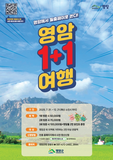 이달 31일부터 올해 말까지 이어지는 사업 참여·인증은 온라인 ‘영암 여행 원플러스 원’ 홈페이지에서 할 수 있다.