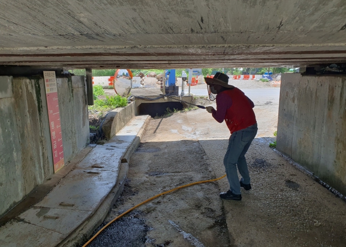특히 장마철 및 집중호우 이후에 계속해서 발생하는 도로 파임(포트홀)을 정비하기 위해 자체현장반 및 복구업체가 상시 도로 순찰하고 있다.