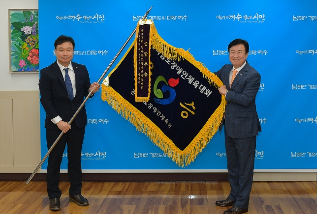 이어 지난 25일, 여수시는 시장실에서 정기명 시장과 여수시 장애인체육회 관계자들이 참석한 가운데 선수단의 의미 있는 성과를 축하하고 종합우승 트로피와 우승기 전달식을 가졌다.