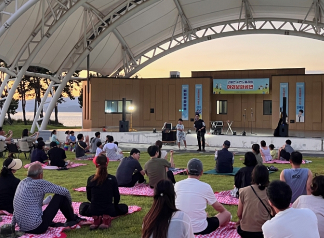 올해 들어 세 번째로 열린 고흥만 수변노을공원 야외 문화공연은 여름 물놀이 시즌을 맞아 관광객과 지역주민에게 열린 음악의 장을 선사하기 위해 마련됐다.