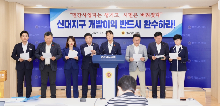 의원들은 “신대지구는 광양경제자유구역청과 순천시가 주도한 공공개발사업임에도 불구하고 수천억 원에 달하는 분양 수식이 민간사업자에게만 돌아갔다”며 “지역사회에는 단 한 푼도 환수되지 않은 상황”이라고 강하게 성토했다.