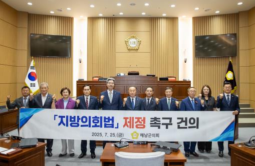 이어 국회가 '국회법'을 통해 입법활동, 예산심의, 정부 견제 등 핵심 권한을 법으로 명확히 규정받고 있듯이, 지방의회도 별도의 '지방의회법' 제정을 통해 독립된 법적 지위를 확보해야 한다"고 주장하며, “현재 제22대 국회에 계류 중인 4건의 지방의회법안이 이번에는 반드시 통과돼야 한다”고 강조했다. 이어, “제21대 국회에서 발의된 관련 법안들이 임기만료로 폐기된 것을 되풀이해서는 안 된다”고 덧붙이며, 지방자치 실현을 위한 입법적 노력이 절실하다고 말했다.