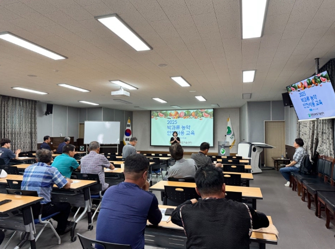 함평군은 지난 25일 함평군 농업기술센터 교육장에서 박과류 재배농업인 및 귀농인을 대상으로 병해충 피해 예방 및 농약 안전 사용 교육을 실시했다고 29일 밝혔다.