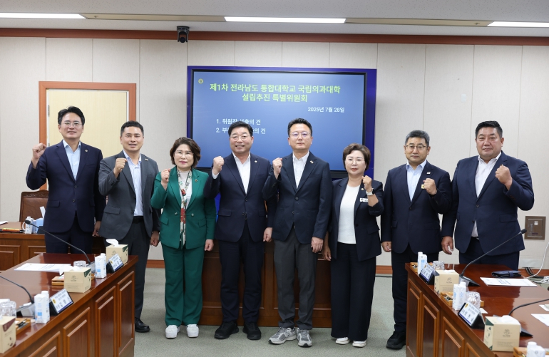 한편, 전라남도의회 제392회 임시회에서 통과된 전라남도 통합대학교 국립의과대학 설립 지원 특별위원회는 김태균 의장이 구성 결의안을 대표 발의했으며 신민호(순천6), 최선국(목포1), 나광국(무안2), 박현숙(비례), 김화신(비례), 손남일(영암2), 최정훈(목포4), 정영균(순천1), 임형석(광양1), 진호건(곡성) 의원 10인으로 구성됐다.