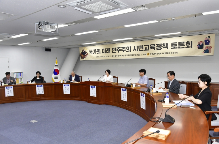 명진 광주광역시의원은 29일 시의회 예산결산위원회 회의실에서 ‘국가의 미래, 민주주의 시민정책’을 주제로 토론회를 열었다.