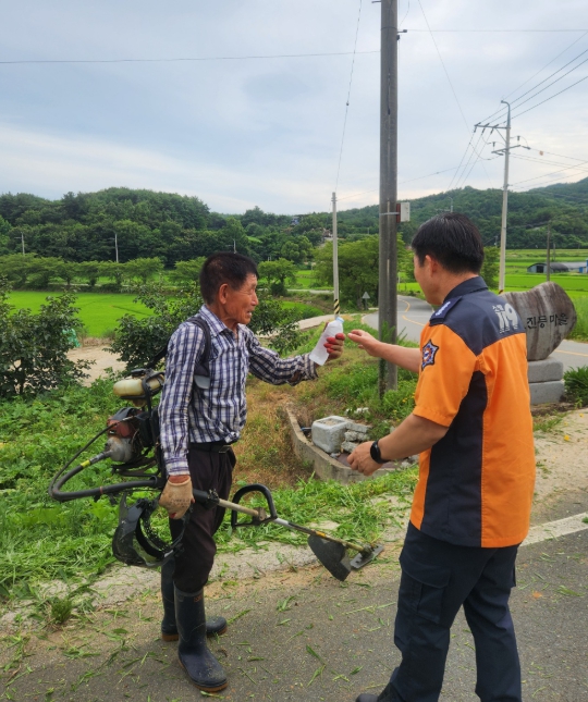 특히, 정용인 서장은 직접 논·밭 등 야외작업 현장을 방문해 고령 농업인의 건강 상태를 살피고, 귀가를 독려하며 폭염 시 행동요령을 안내하는 등 현장 중심의 안전 활동을 전개했다.