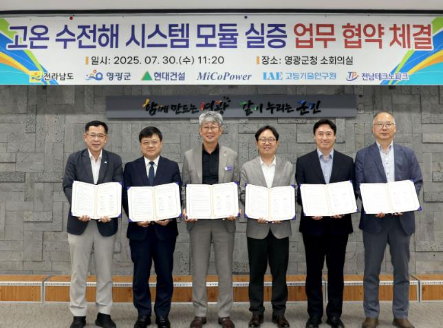 협약에 따라 ▲전남도와 영광군은 수전해 실증 부지 제공과 행정지원 ▲전남테크노파크와 고등기술연구원은 인프라 운영과 안전관리 ▲미코파워는 모듈 공급과 운전 ▲현대건설은 설계·시공과 시운전 등 기관별 역할을 기반으로 실증사업을 공동 추진한다.