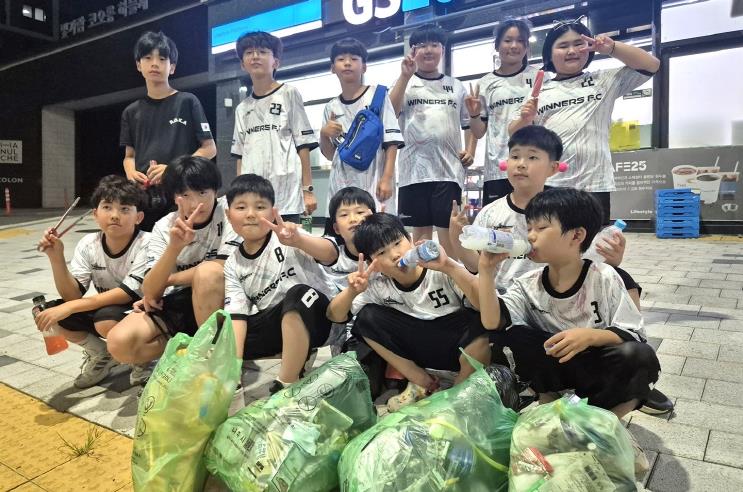 이들과 함께 줍깅 활동에 참여하고 있는 위너스 FC 문미애 총무는 “다양한 사회 문제들이 대두되는 요즘 아이들의 성장에 긍정적인 영향을 주고자 활동에 동참하고 있다”며 “작은 실천이 아이들의 신체와 마음을 건강하게 하고 더 나아가 세상을 깨끗하게 만들기를 기대한다”고 말했다.
