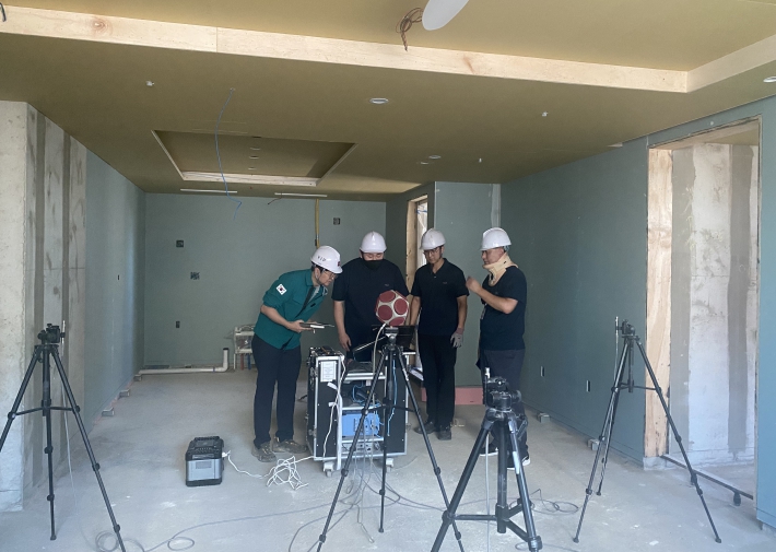 바닥충격음 견본세대는 경량충격음 시험, 중량충격음 시험을 통해 층간소음을 확인한다.