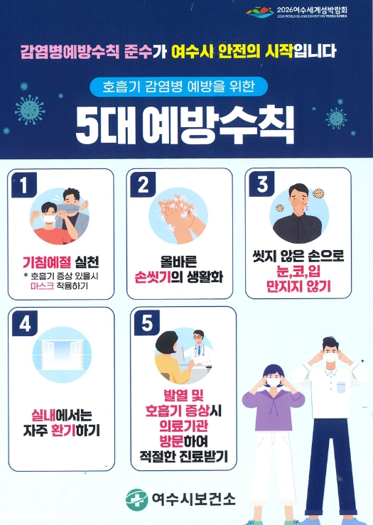 여수시는 여름철 폭염으로 에어컨 사용이 늘면서 실내 환기가 줄어들고, 휴가철을 맞아 사람 간 접촉이 증가함에 따라 코로나19 등 호흡기 감염병 확산 가능성이 높아지고 있다고 설명했다.