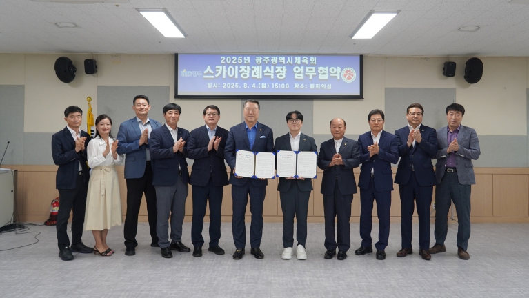 이번 협약은 장례 문화의 선도적 역할을 하고 있는 스카이장례식장과 업무협약을 함으로써 시체육회 및 회원단체 등 광주체육인들에게 고품질 맞춤형 장례서비스를 제공하고, 따뜻하고 안전한 지역사회를 함께 만들어 가기 위해 맺었다.