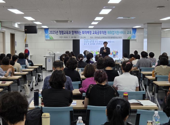 전남교육청은 7월 28~29일 순천만생태문화교육원과 8월 4~5일 체육교육센터에서 ‘퇴직 예정 교육공무직원 재취업 지원 서비스 교육’을 실시했다.