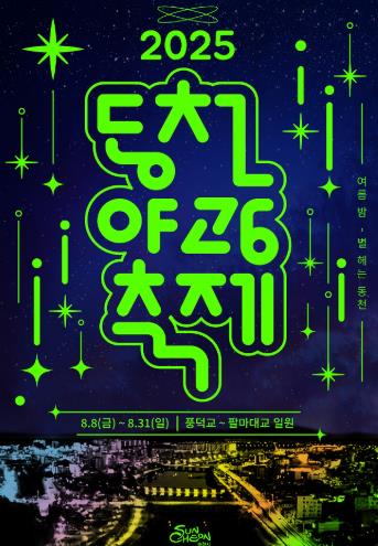 이후 매주 금·토요일에는 시원한 물총 놀이와 DJ 공연이 결합된 워터파티(9일), 광복 80주년 기념 야외 방탈출 ‘히든페이스’(15일), 동천 야경을 따라 달리는 야광 레이스(16일), 그리고 수천 개의 촛불로 무대를 밝히는 캔들라이트 콘서트(22·23일) 등 다채로운 테마 프로그램이 이어진다.