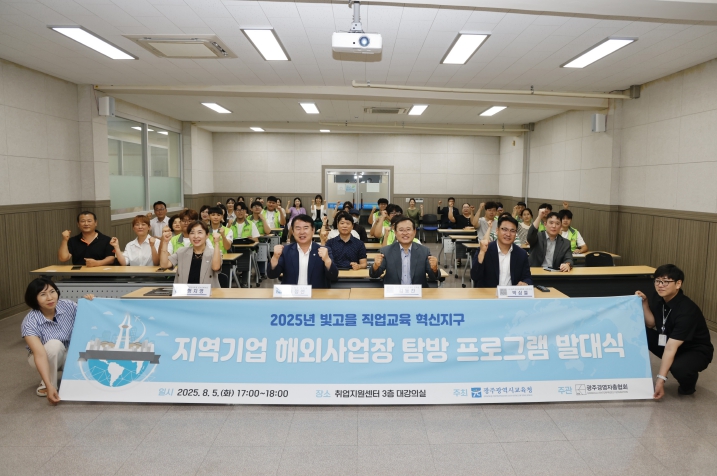 광주시교육청은 5일 취업지원센터에서 이정선 교육감, 광주경영자총협회 김동찬 부회장, 참가 학생, 학부모 등이 참석한 가운데 ‘빛고을 직업교육 혁신지구 지역기업 해외사업장 탐방 프로그램’ 발대식을 개최했다.