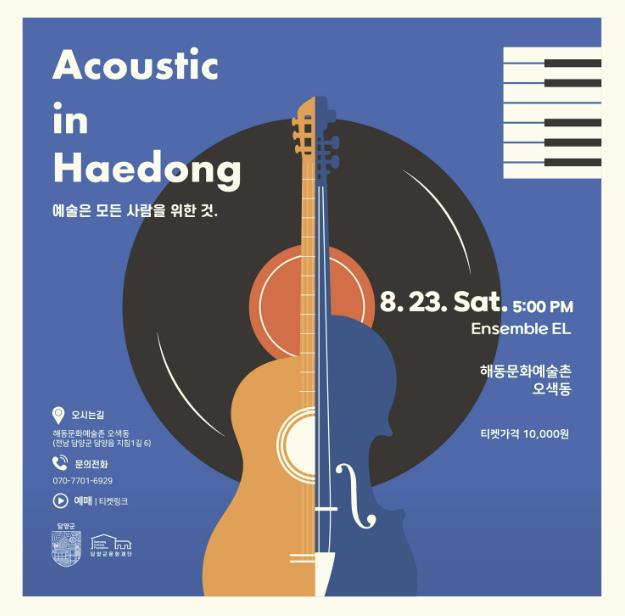 ‘어쿠스틱 인 해동’은 2024년부터 진행해온 지역 거점공간 활성화 공연 프로그램으로, 담양 해동문화예술촌을 무대로 지역 공연예술의 수준 향상과 문화 거점 조성을 목표로 기획됐다.