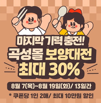 군 관계자는 “이번 곡성몰 보양대전을 통해 곡성 농특산물의 건강한 가치를 알리고 소비자에게는 무더위 극복과 실속 소비라는 두 마리 토끼를 잡을 기회를 제공하고자 한다”라며, “앞으로도 계절별 특성과 트렌드에 맞는 기획전을 지속적으로 선보이며 곡성몰의 경쟁력을 강화해 나가겠다”라고 밝혔다.