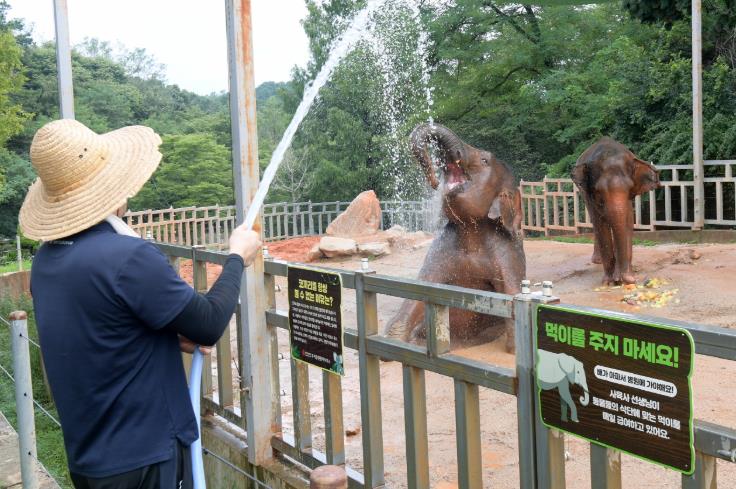 아시아코끼리 ‘봉이’(1998년생)와 ‘우리’(2010년생) 모녀에게는 과일을 얼린 대형 얼음 간식이 제공돼 코끼리들이 얼음을 부수며 먹거나 샤워를 즐기는 장면은 시민들의 이목을 집중시켰다.