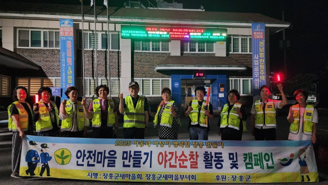 이번 순찰은 여성·아동·청소년·어르신 등 사회적 약자가 안심하고 생활할 수 있는 마을 환경을 조성하기 위한 취지로, 장흥군새마을부녀회 주관으로 각 읍면 부녀회원 10명씩 참여하여 릴레이 형식으로 진행되고 있다.