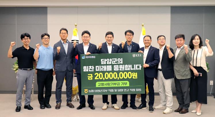 농협중앙회 담양군지부는 지난해에 이어 올해에도 고향사랑기부를 통해 담양을 향한 따뜻한 마음을 전했으며, 담양군지부 직원과 담양에 연고가 있는 직원 등 120여 명이 자발적으로 참여해 마련됐다.