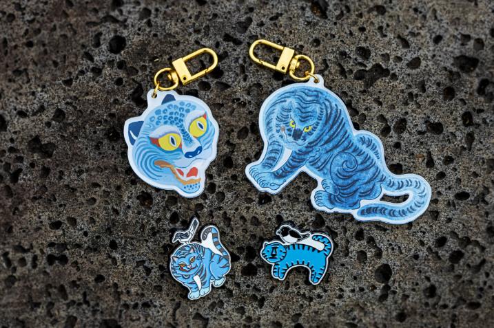 이번 시즌을 대표하는 상품으로 야심차게 제작한 배지와 키링, 티셔츠와 모자에는 율아트에서 가장 높은 인기를 누리고 있는 푸른 호랑이가 프린팅 돼 있다.