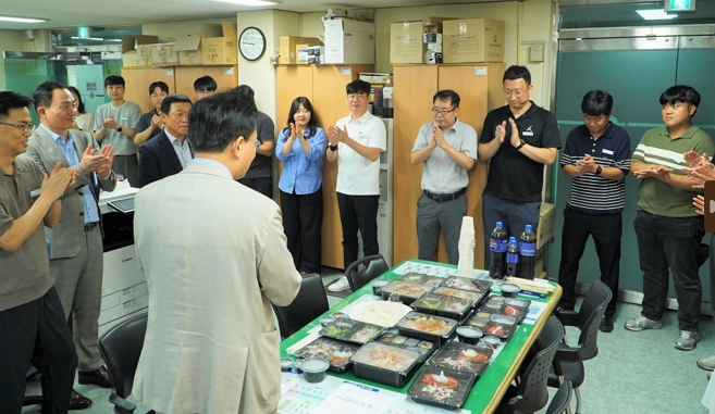 이에 윤병태 시장은 수해 복구와 동시에 업무에 지친 전 공직자들의 사기 진작을 위해 전 직원 대상 간식 제공 및 간담회를 실시했다.