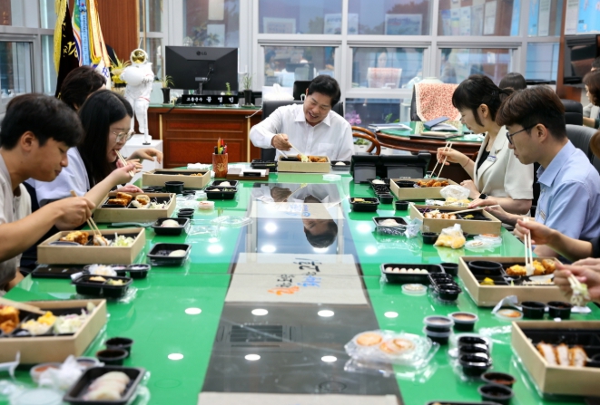 첫 만남은 지난 4일, 재난안전과·종합민원실 등 격무부서의 저연차 직원 10여 명이 참여한 가운데 진행됐다. 이어 12일 진행된 두 번째 만남은 민생회복 소비쿠폰 배부와 폭염 및 집중호우 비상근무로 고생하는 읍·면사무소 직원들과 군수 집무실에서 ‘도시락 데이트’ 형식으로 진행됐다.