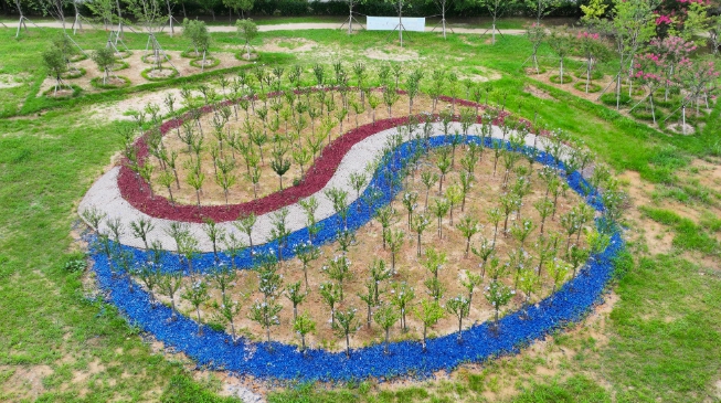 0.3ha 규모로, 무궁화와 다른 수목을 조화시켜 태극기를 형상화한 것이 특징이다.
