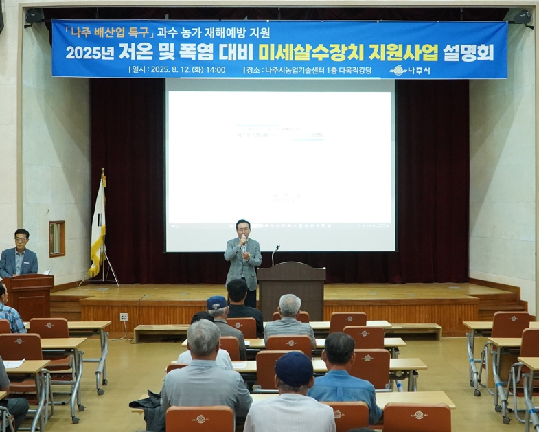 나주시는 기후변화로 인한 저온과 폭염 등으로부터 피해를 줄이기 위해 ‘저온 및 폭염 대비 미세살수장치 지원사업 설명회’를 개최하고 본격적인 사업 추진에 나섰다고 13일 밝혔다.